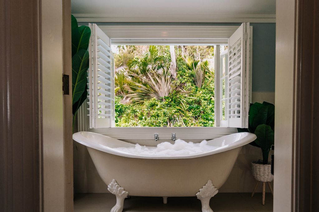 The UPSTAIRS BATHROOM is just stunning! Push open the bi-fold windows, then drink in the visual smorgasbord of flowers and native trees sprawling on the banks outside, then slide into the slipper bath! At the same time enjoy your favourite wine, scented candles, and bubble bath? The choice is yours. The dual silver mirrors add a further touch of class, and shutters on the windows provide complete